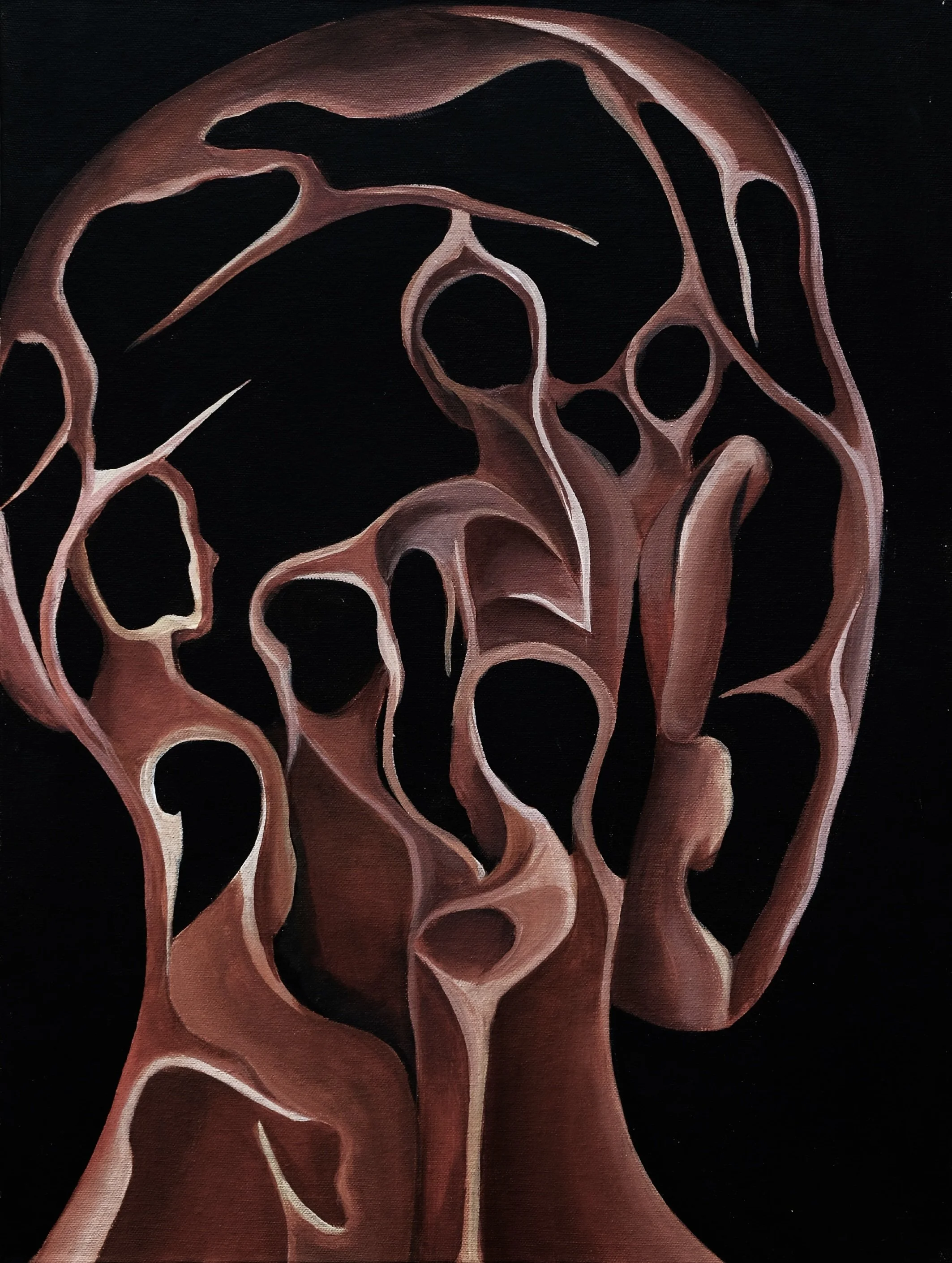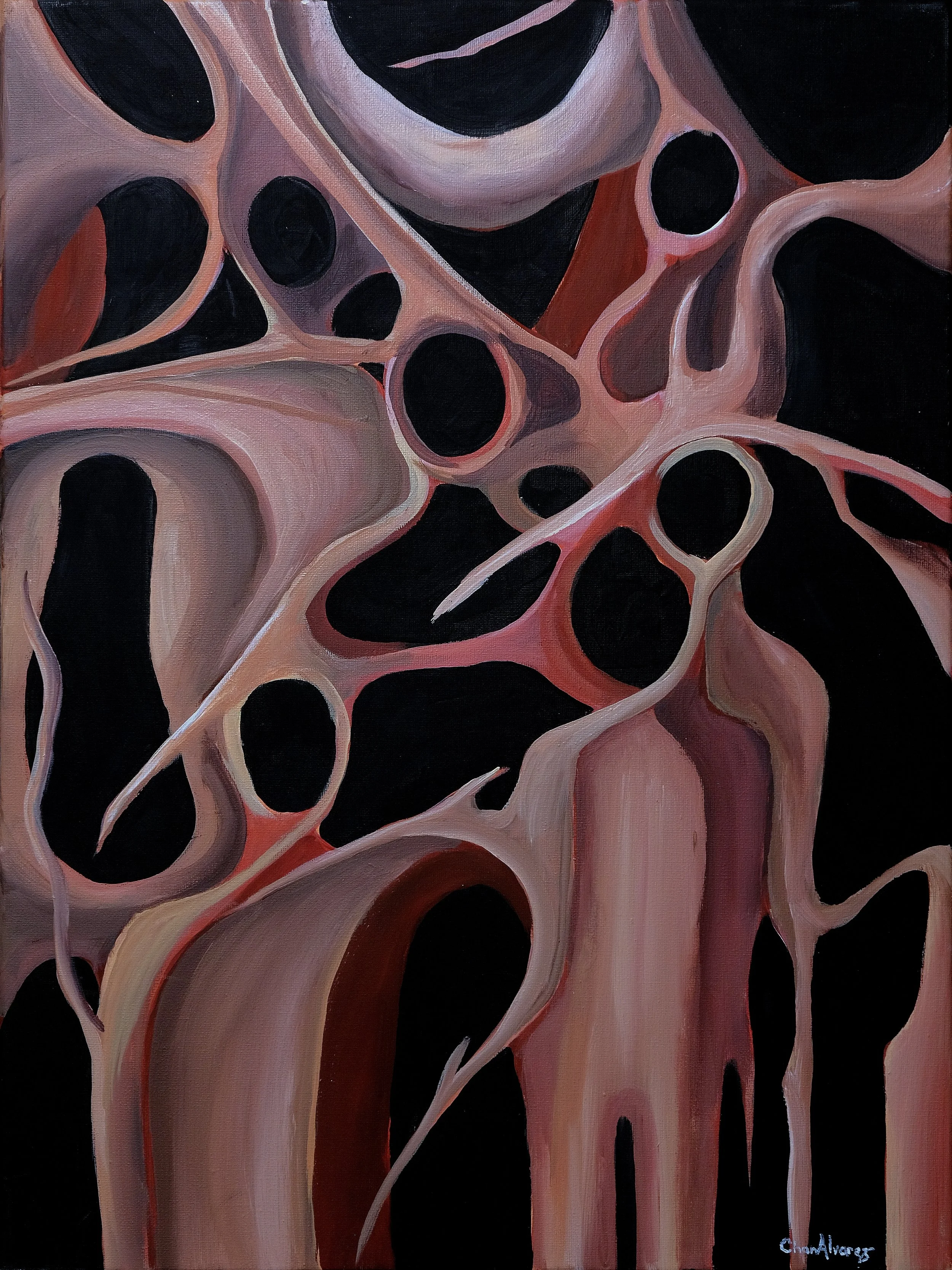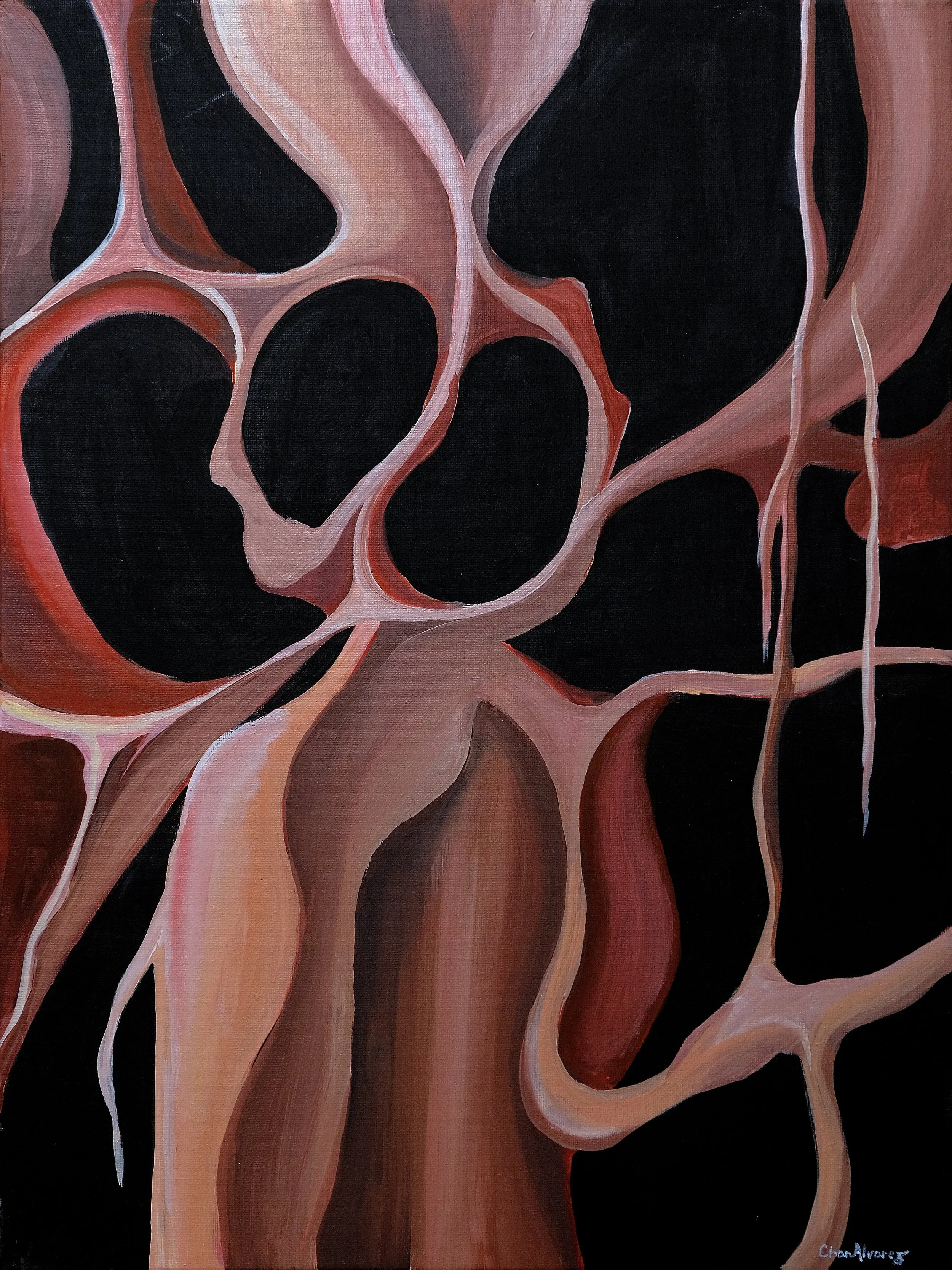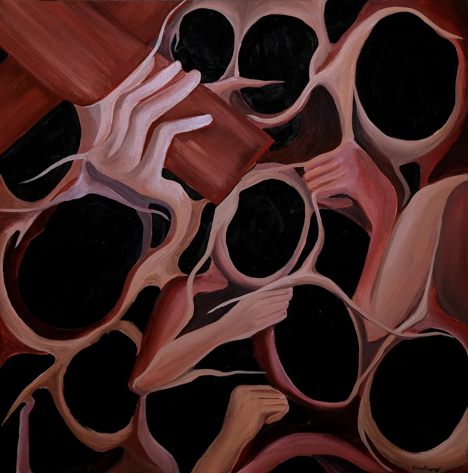 In this body of work, Chan Alvarez draws on Søren Kierkegaard’s philosophy of the self as a relation that relates to itself – a paradoxical synthesis of opposites that captures a self in crisis: not yet whole, fractured by loss, and disconnected from its true nature.